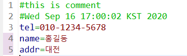 System.out.println("주소 : " + prop.getProperty("addr"));
