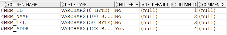 mem_tel varchar2(50) not null, -- 전화번호