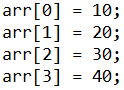 ex1) int형 값을 4개 저장할 수 있는 변수 arr을 선언 및 생성하시오